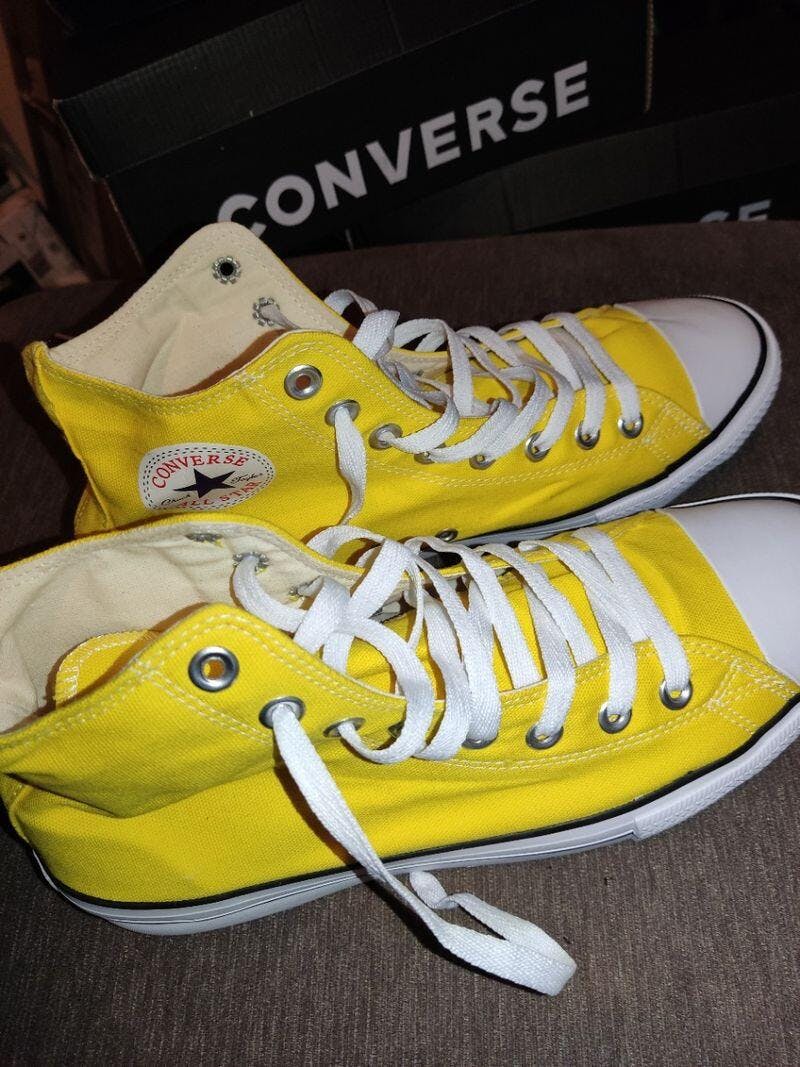 Energia pura em forma de tênis. O Star Cano Alto Amarelo é para quem não aceita dias cinzentos. Unindo o design clássico da "botinha" com um amarelo vibrante em material sintético, ele é a peça statement que faltava no seu guarda-roupa.
